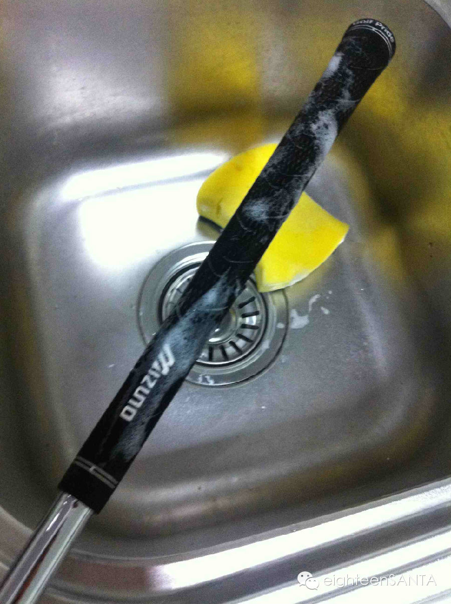 グリップを軽く濡らして、スポンジに洗剤をつけてグリップを優しく洗いましょう。